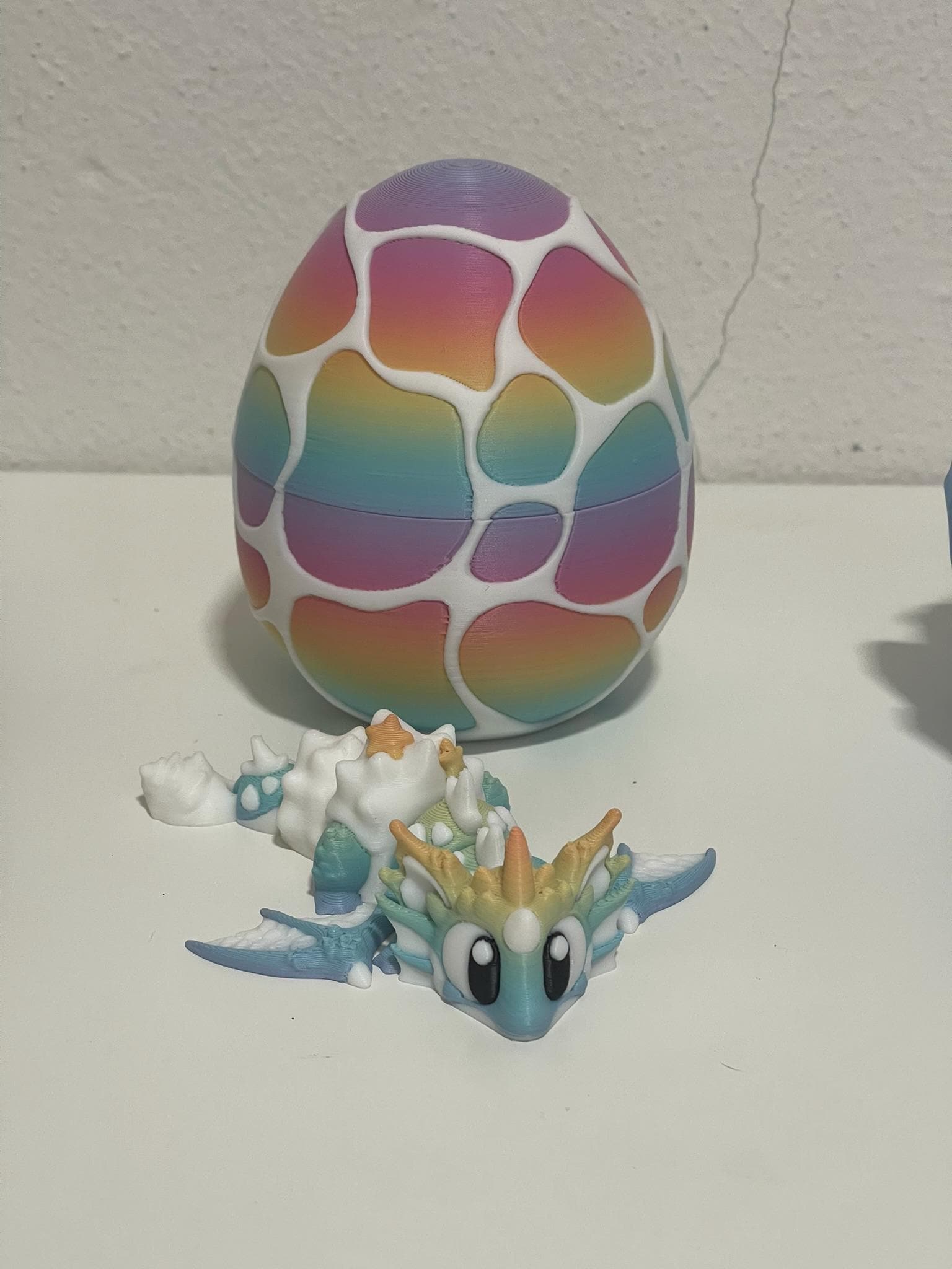 Each egg is fully 3D printed, highly detailed, and finished in vibrant, eye-catching colors. The matching baby dragon rests outside the egg, making this a fun and whimsical display piece for desks, shelves, nurseries, game rooms, or gift giving.