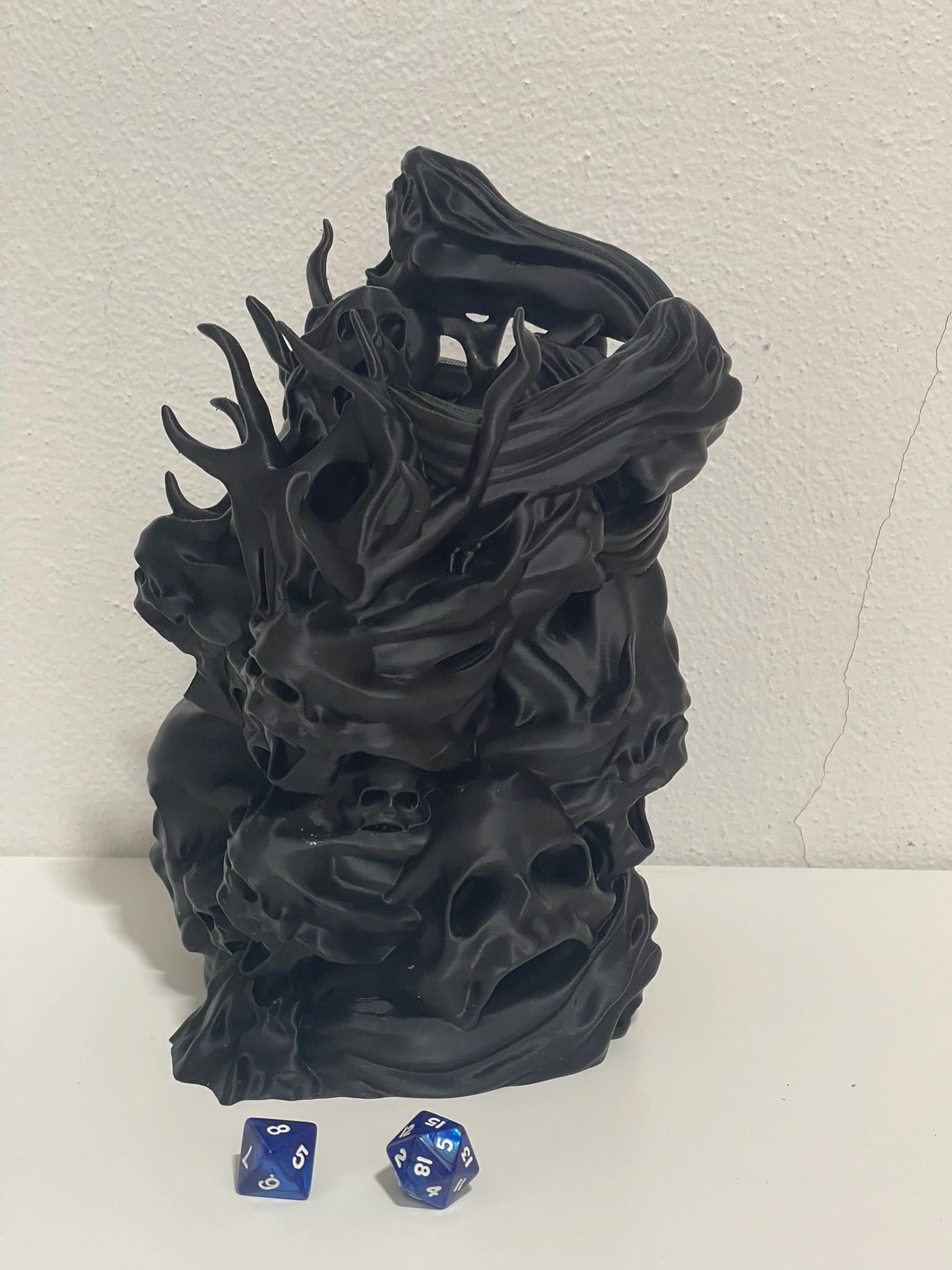 Drop your dice into the top and watch them descend through the hidden internal ramps before emerging at the base — randomized, contained, and ready to decide your fate.