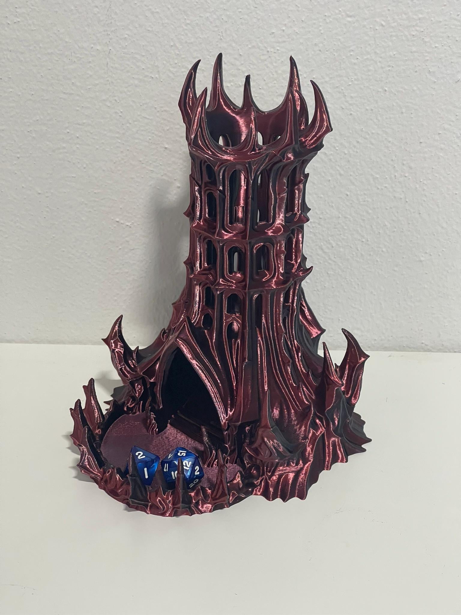 The Obsidian Citadel Dice Tower stands like a fortress carved from volcanic stone.