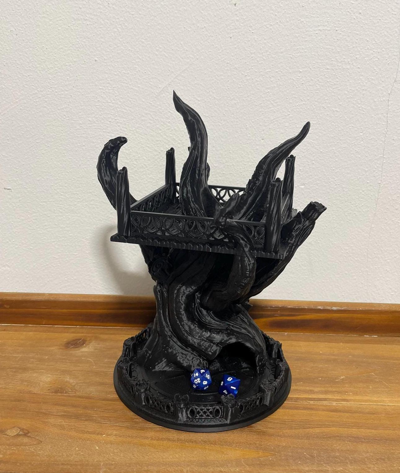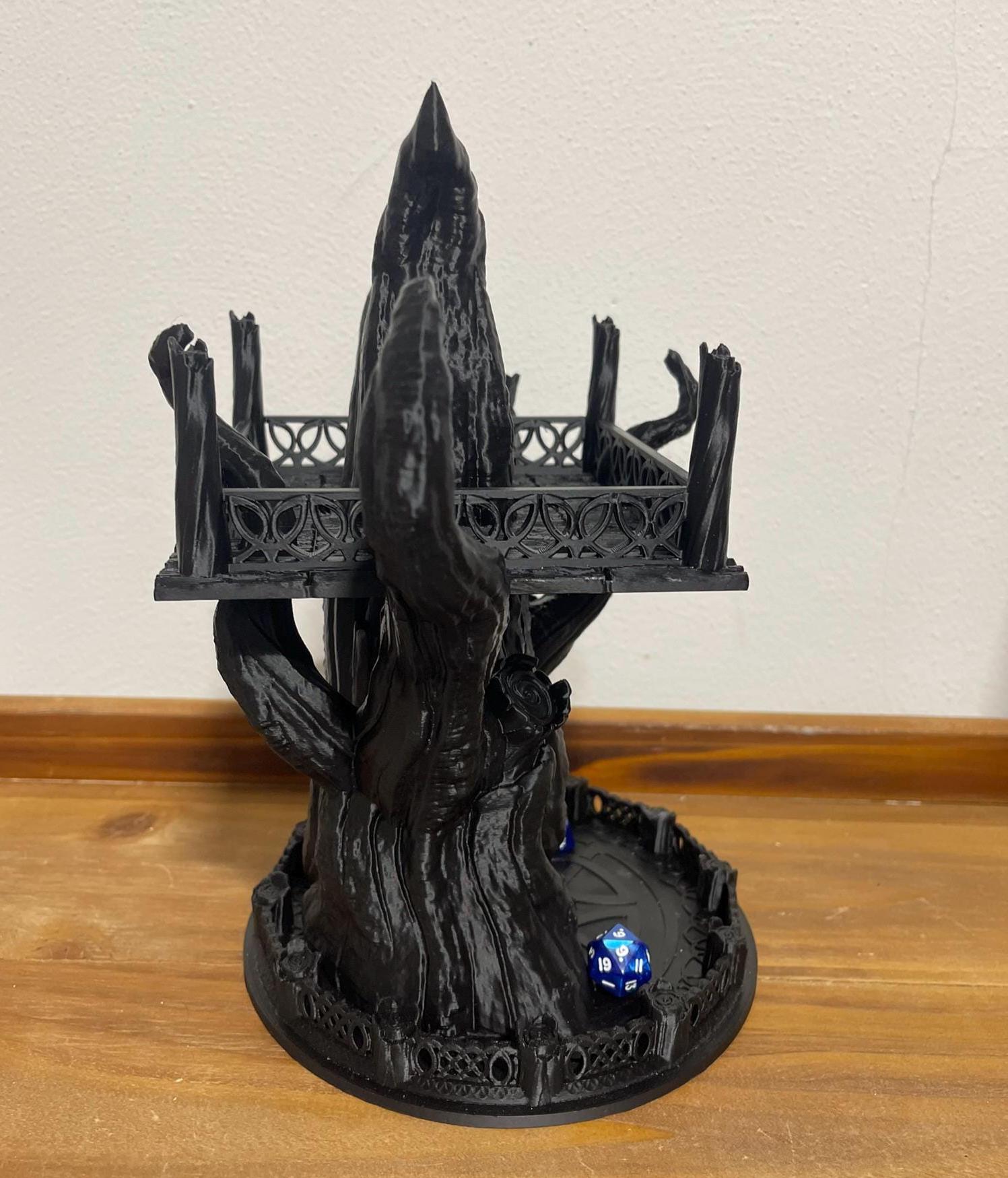 This is a statement piece — both a functional dice tower and a display-worthy terrain element.